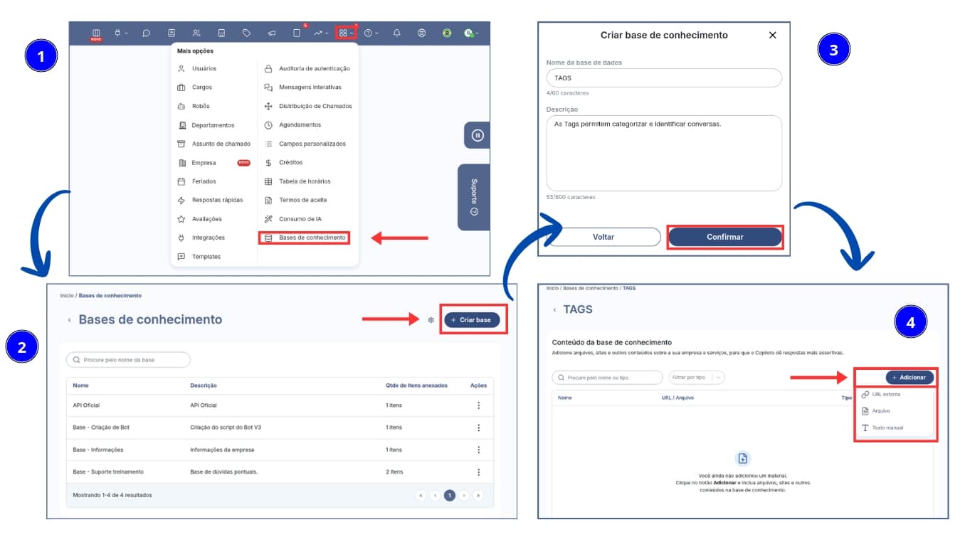 A base de conhecimento é o núcleo do agente inteligente. É nela que a empresa inclui documentos, FAQs, manuais, políticas e links relevantes. Quanto mais atualizada e detalhada essa base, mais confiáveis e contextualizadas serão as respostas.