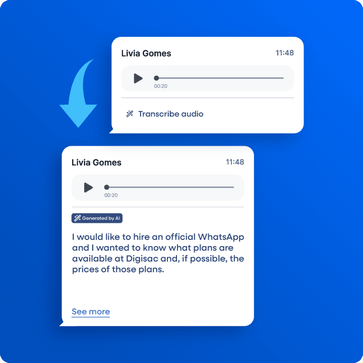 No matter the size of your operation: with Digisac’s AIs, you’ll save time, standardize quality, and speed up service without losing the human touch.