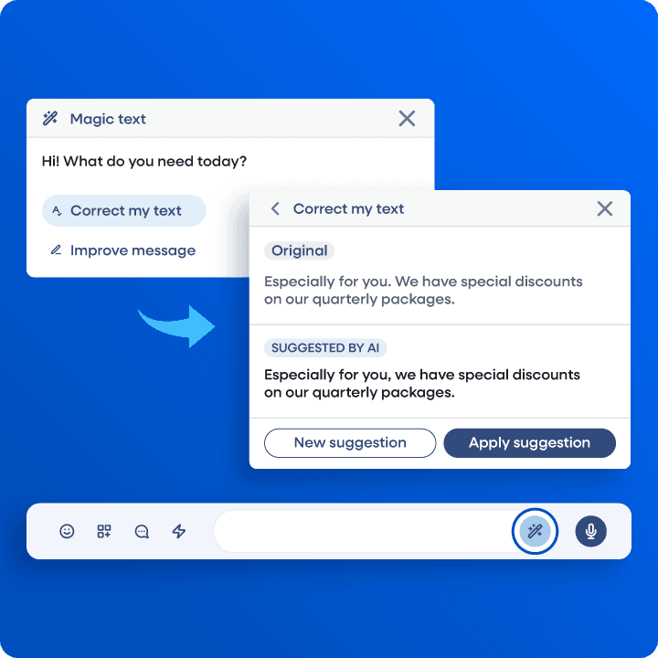 Want to ensure your team’s communication is always spot on? Magic Text automatically enhances your messages to ensure your communication is always clear and professional.