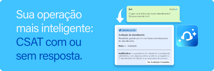 Ao atribuir automaticamente uma nota com base na análise de sentimento da conversa, a funcionalidade ajuda gestores, analistas e operadores a tomarem decisões com base em dados mais confiáveis, mantendo a integridade das métricas tradicionais de CSAT e sem interferir na jornada do consumidor.